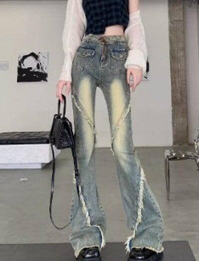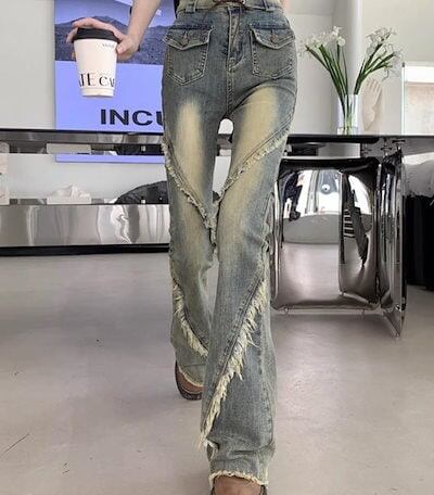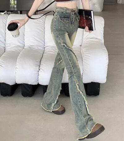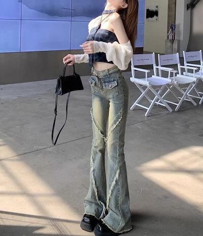 2024春夏 アメリカン パンツ デニム ブルー ジーンズ ロング丈 スキニー レッグ加工 ハイウエスト 脚長効果 美脚効果 細見え 秋 カジュアル 韓国ファッション お出かけ1