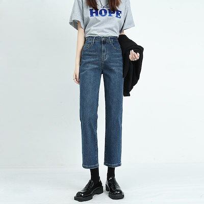 脚長効果!スキニーデニムパンツ テーパードパンツ ストレートジーンズ レディース 春新作 ゆったり ハイウエスト 九分丈 ストレートパンツ