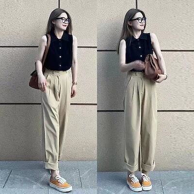 速攻美脚!!テーパードパンツ カジュアルパンツオーバーサイズで痩せ見えゆったり ワイドパンツ ハイウエスト ポケット ウエストゴム レディース