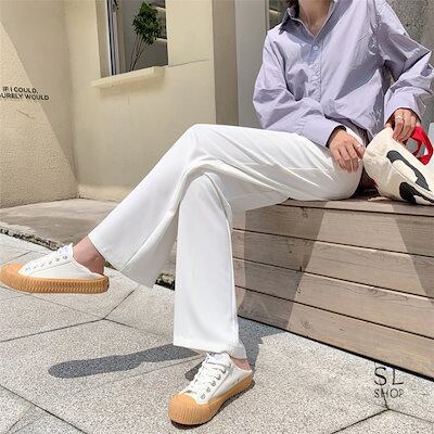 パンツ レディース スラックス ワイドパンツ ウエスト半ゴム 無地 シフォン 落ち感 仕事 L カ