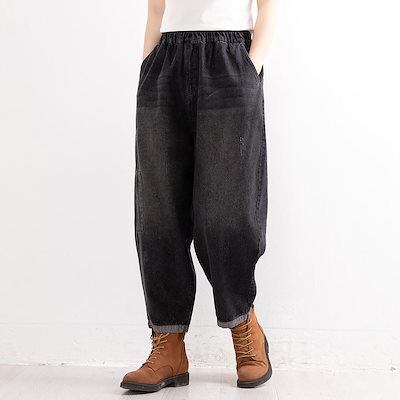 ワイドパンツ/パンツ/ジーンズ/ゆったり/ジーンズ/レディース/ウエストゴム/ヴィンテージ/レトロ/大きいサイズ/パンツ