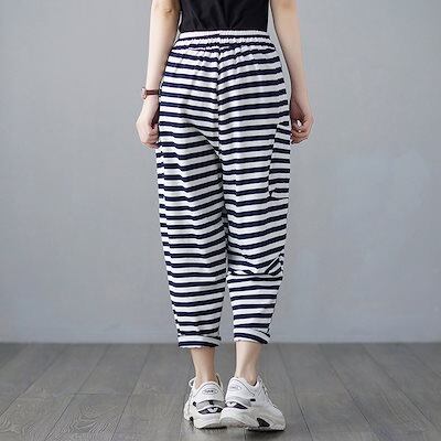 スウェット/レディース/夏/薄手/ドレープ/ストライプ/スウェット/ハーレムパンツ