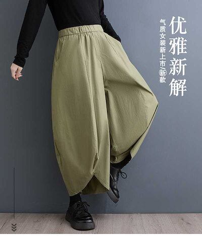 2024春夏 サルエルパンツ レディース ワイドパンツ ゴム 体型カバー ロングパンツ