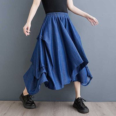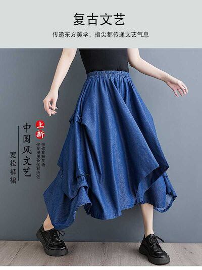 2024/夏/デニム/イレギュラー/折り返し/ゆったり/大きいサイズ/七分丈提灯パンツ/レディース