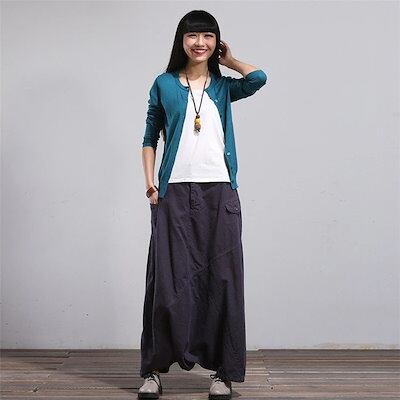 ガウチョパンツ レディース キュロット デニム ジーンズ ワイドパンツ ウエストゴム