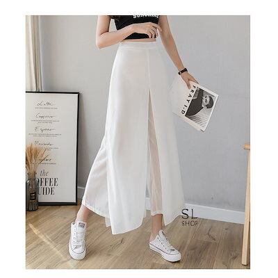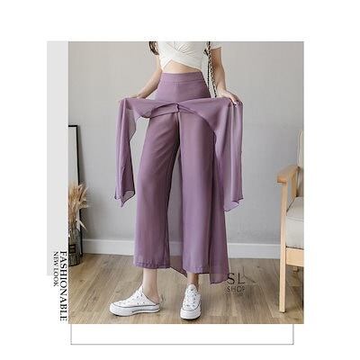 パンツ レディース ガウチョパンツ ワイドパンツ スカーチョ スカンツ シースルー フェイクレイヤー