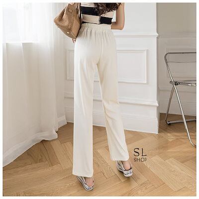 パンツ レディース おしゃれ ワイドパンツ スリット 無地 美足 ウエストゴム カジュアル ボトムス
