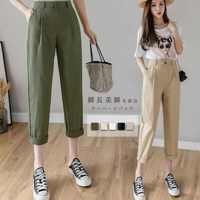 アンクルパンツ レディース ストレートパンツ 着やせ カジュアル 韓国ファッション きれいめ テーパードパンツ 細見え