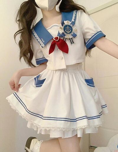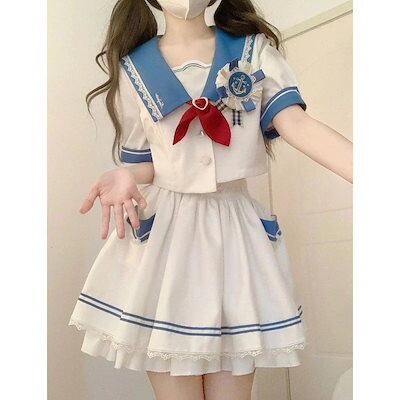ロリータ 二次元 ハロウイン 韓国ファッション 大人気ワンピース甘くて クールな ホットガール jk制服 スーツ スカート 夏 カラーコントラスト ステッチショート トップ ハイウエスト チュチュスカ