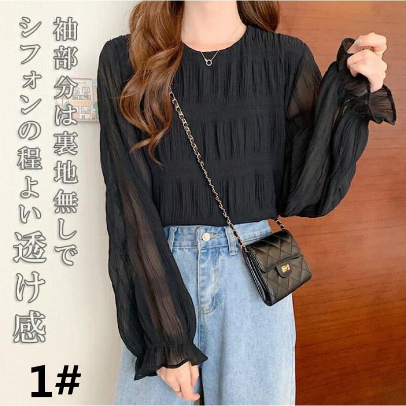 2024年秋新作 ブラウス 半袖シャツ トップス レディース ランタンスリープ シフォンシャツ Sweet