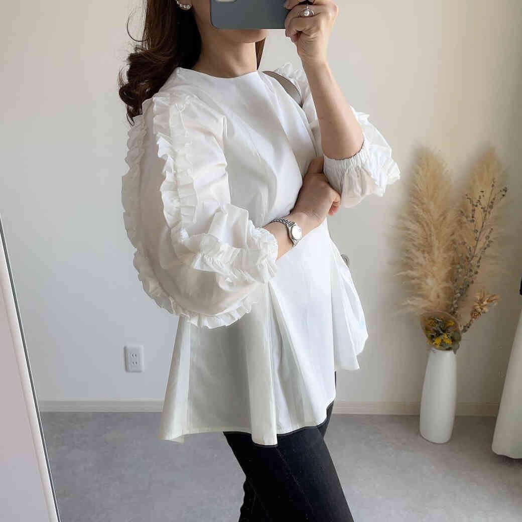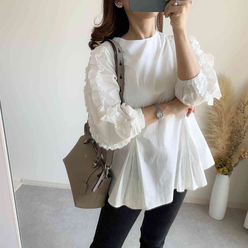 2024秋新作 ブラウス シャツ トップス レディース 気質 エレガント ラウンドネック INS人気