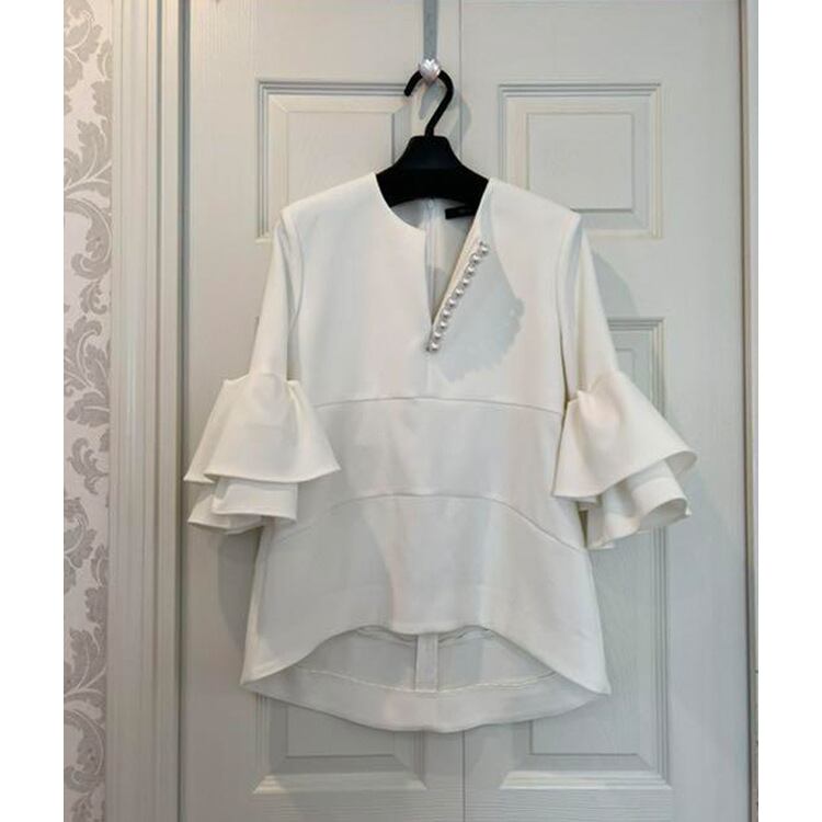 2024年新作 ブラウス 半袖シャツ トップス レディース Vネック 気質 不規則デザイン