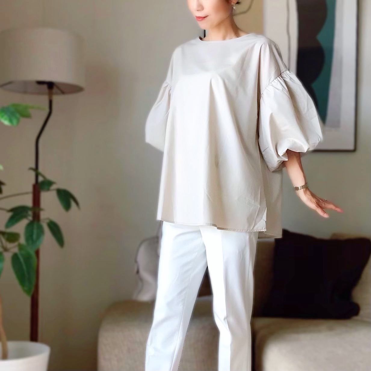 2024年夏新作 シャツ ブラウス 人気シャツ トップス レディース ラウンドネック ランタンスリープ