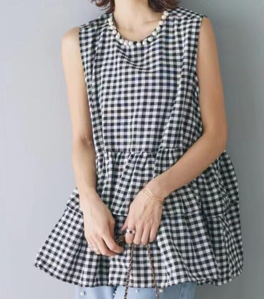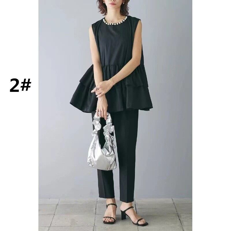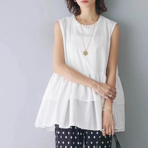 2024年夏新作 ブラウス シャツ ノースリーブ トップス レディース ラウンドネック 気質 オシャレ