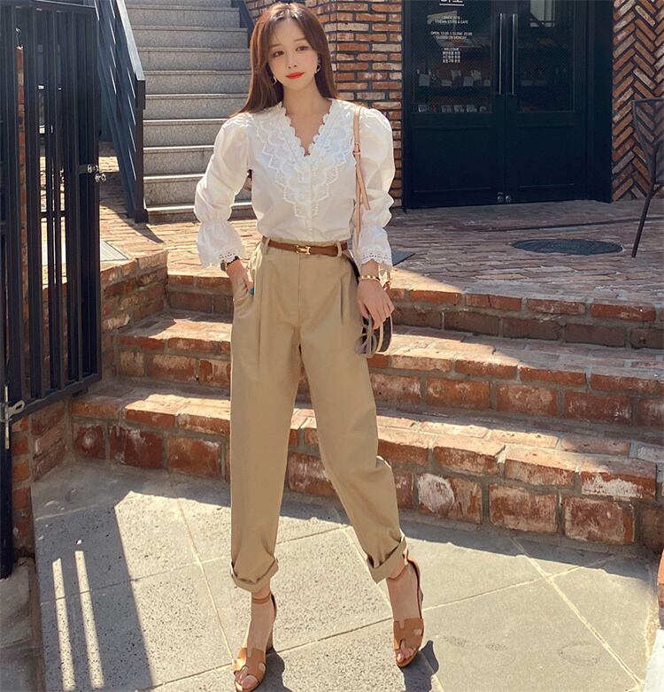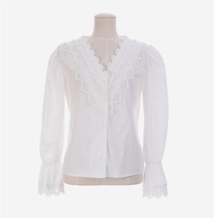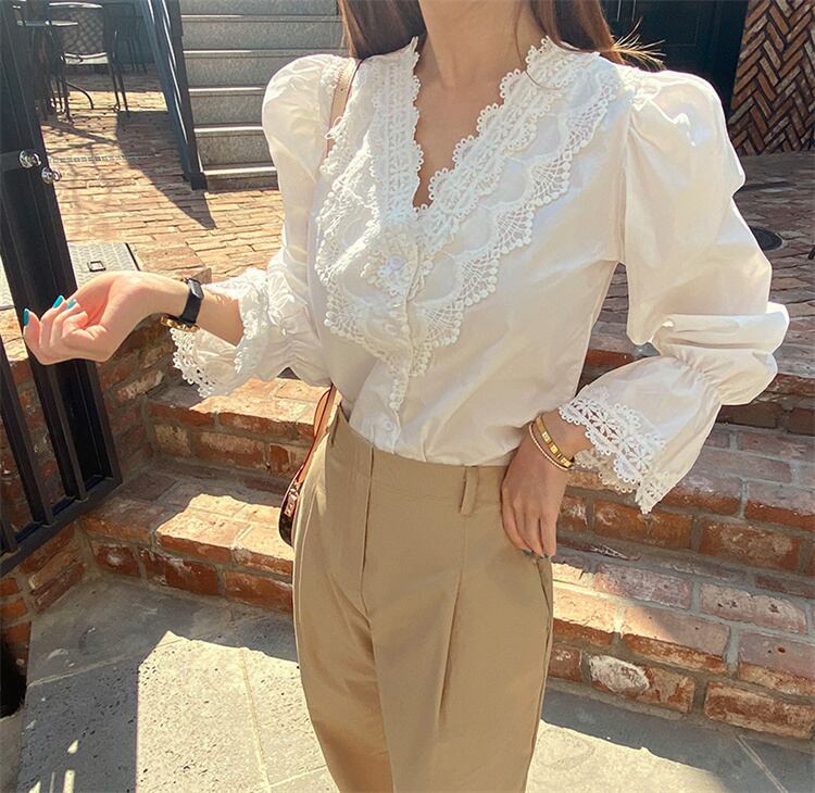 デートテクニック ブラウス レース デザインセンス sweet系 セクシー Vネック 長袖 レディース シャツ