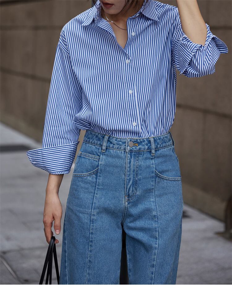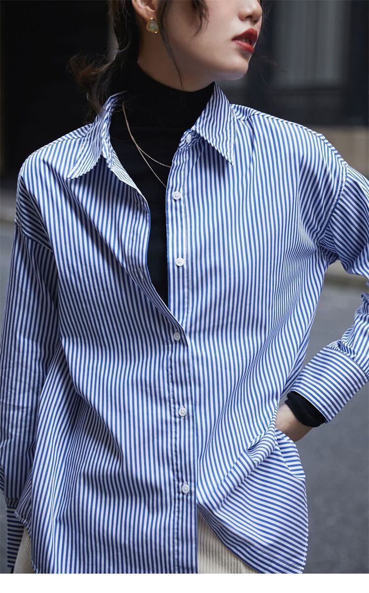 オシャレの幅が広がる シャツ ストライプ スリム デザインセンス ブラウス レディース トップス