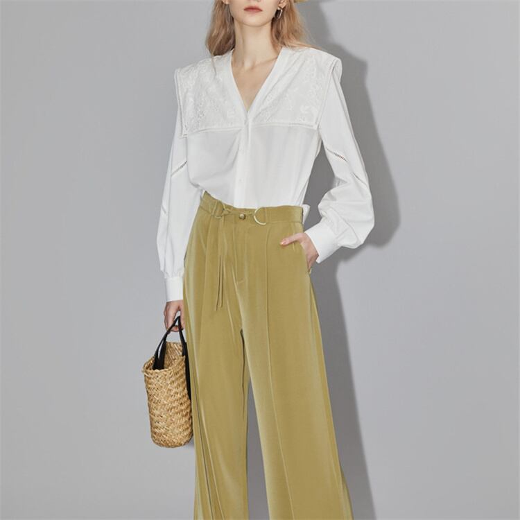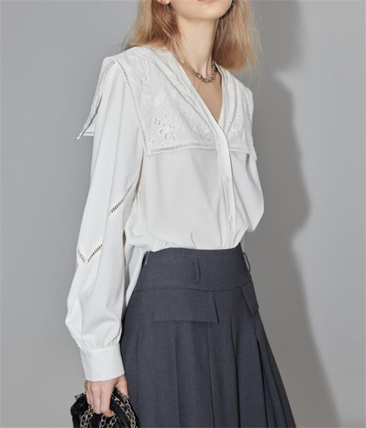 独特なシルエットに魅了される ブラウス レディース デザインセンス レースシャツ トップス Vネック