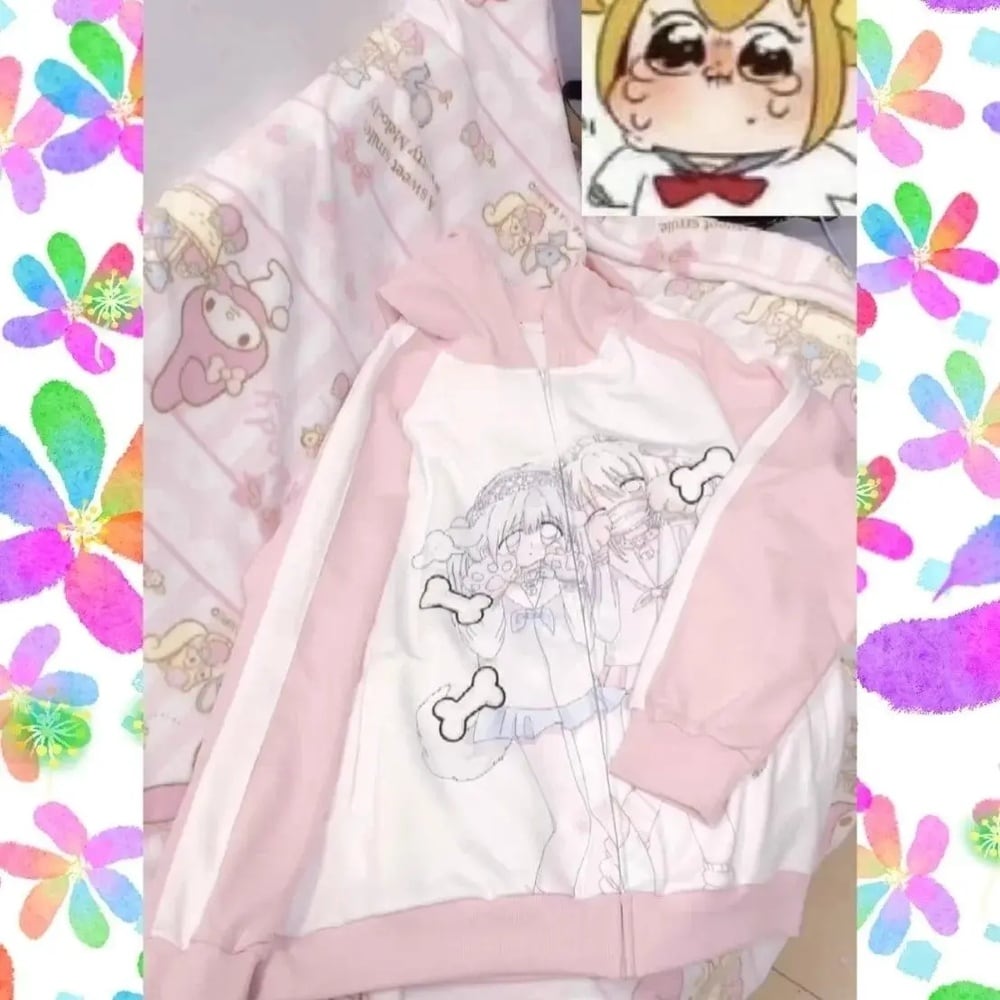 女の子のためのジッパー付き日本のフード付きパーカー、女性のためのカワイイルーズパーカー、黒と白のコート、トレンディでカワイイ、冬と秋 パーカー ジャージ y2k T240908200651_02