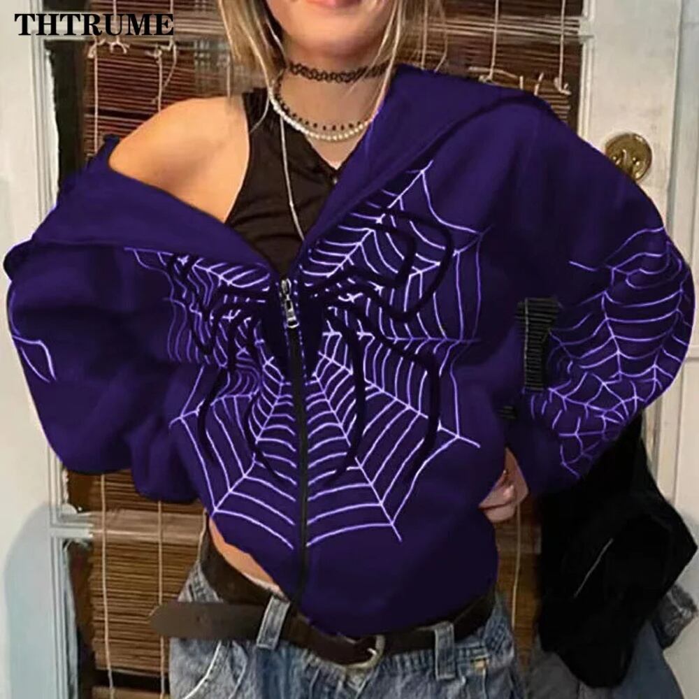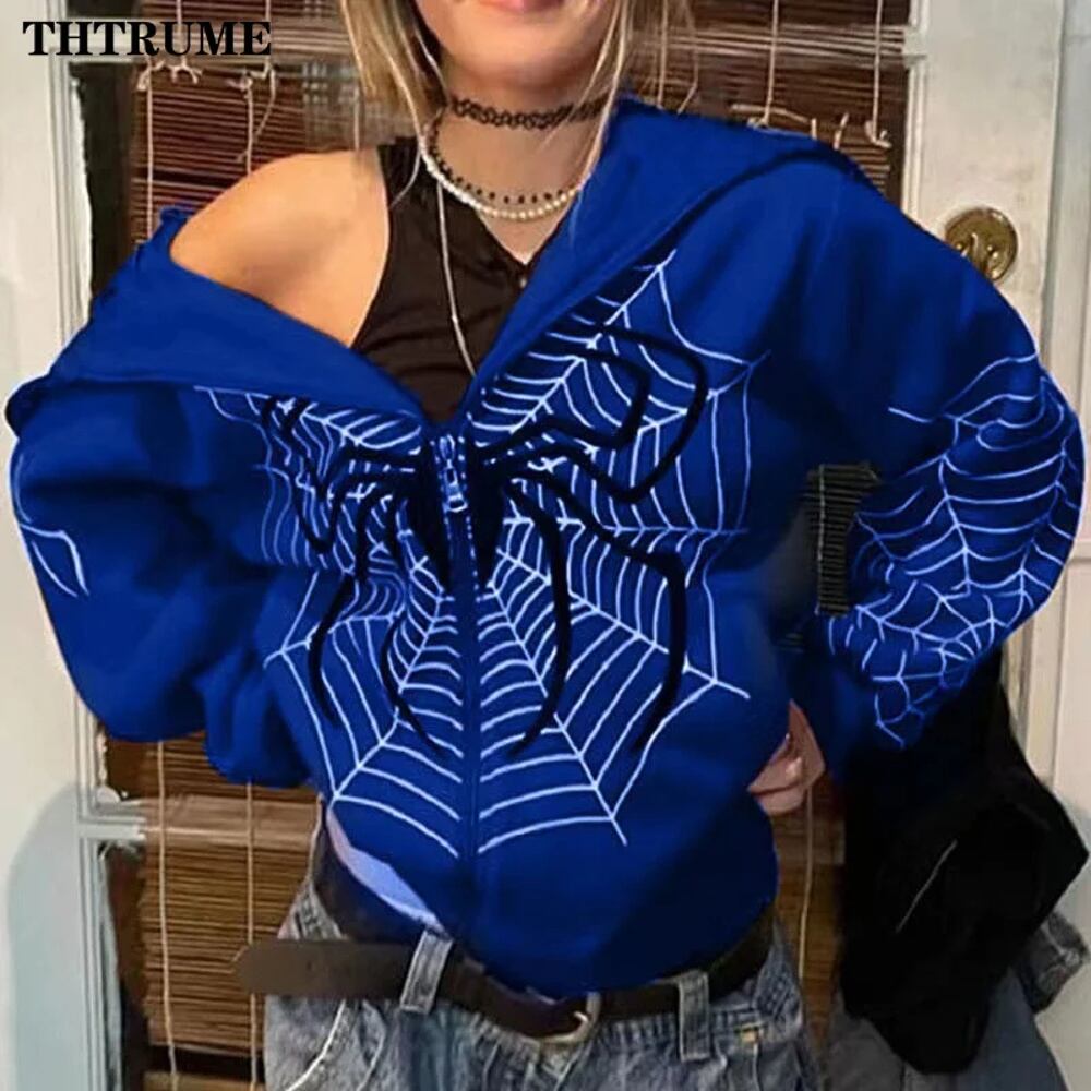 女性用の特大フード付きトップス,カジュアルなジップアップストリートウェア,黒のフード付きスウェットシャツ,グランジプリント,ストリートウェア,y2kスウェットシャツ,ファッション パーカー ジャージ y2k T240908200713_02