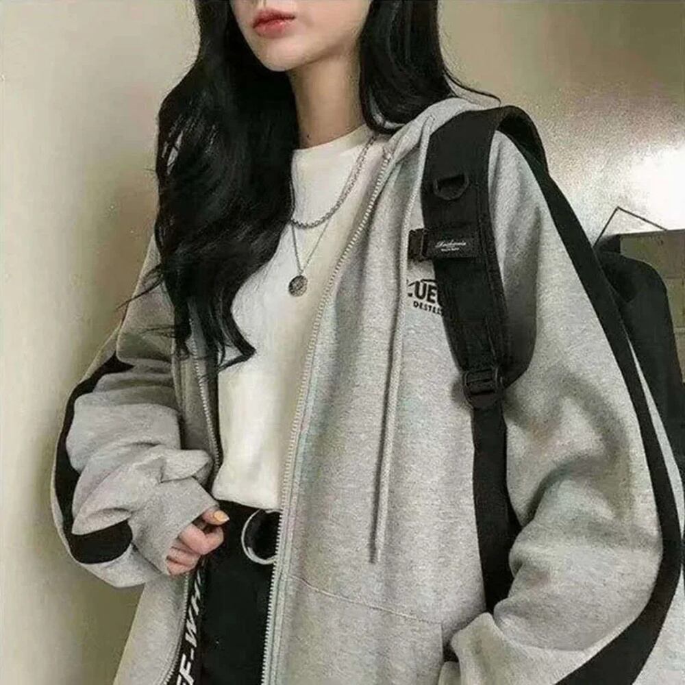 女性用特大スウェットシャツ,y2kドローストリング,フード付き,ジッパー,韓国語,カジュアル,ルーズフィット,ストリートウェア,秋 パーカー ジャージ y2k T240908200811_01