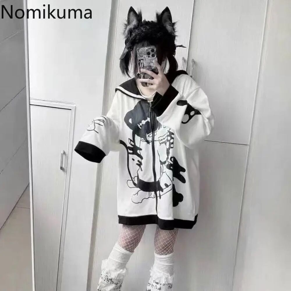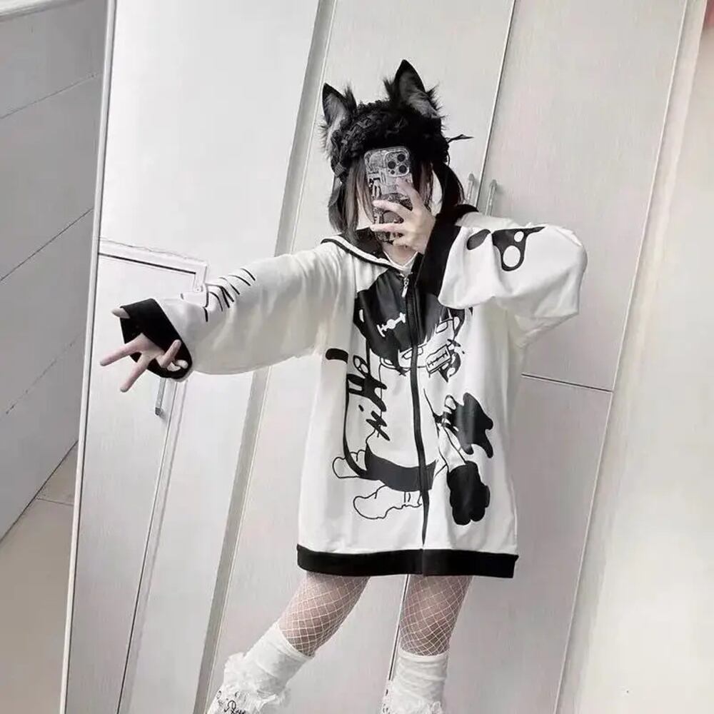 セーラーカラーの女性用フード付きスウェットシャツ,猫柄のスウェットシャツ,ジッパー付きコート,y2kトップス,カジュアルファッション,大きくてかわいい,厚手の服 パーカー ジャージ y2k T240908201305_03