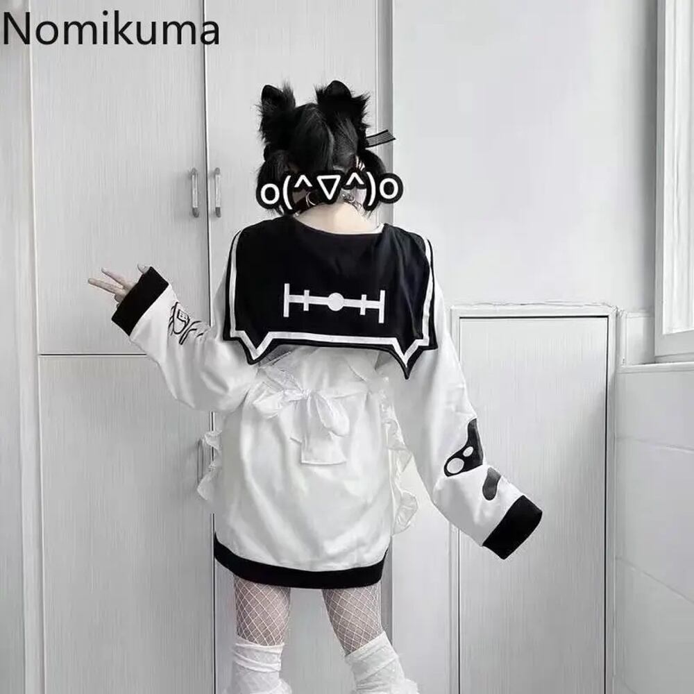 セーラーカラーの女性用フード付きスウェットシャツ,猫柄のスウェットシャツ,ジッパー付きコート,y2kトップス,カジュアルファッション,大きくてかわいい,厚手の服 パーカー ジャージ y2k T240908201305_04