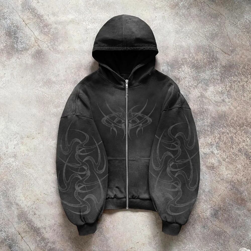 女性のためのウォッシュド不透明な骨格プリントフード付きジャケット、特大のパーカー、アメリカのヴィンテージジッパーカーディガン、y2kストリートウェアウェア服 パーカー ジャージ y2k T240908201352_09