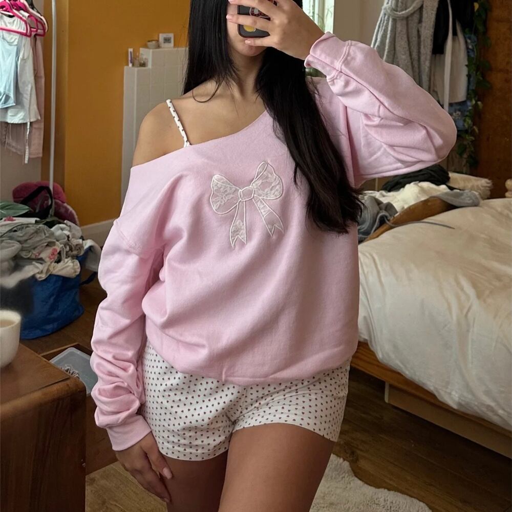 Gaono-女性用y2kオフショルダーパーカー、スウェットシャツ、長袖、ボウプリントプルオーバー、ヴィンテージグラフィックトップ、冬、秋 パーカー ジャージ y2k T240908201406_05