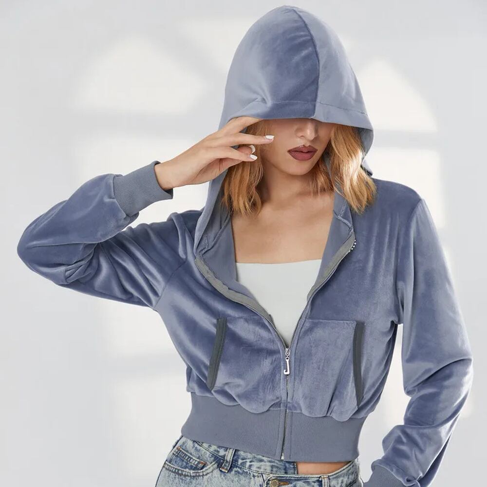 女性用長袖ショートトップ、ジッパーパーカー、サイドポケット、ルーズショートベルベットコート、カジュアルウェア、y2k、トップコート、春、秋 パーカー ジャージ y2k T240908201505_02