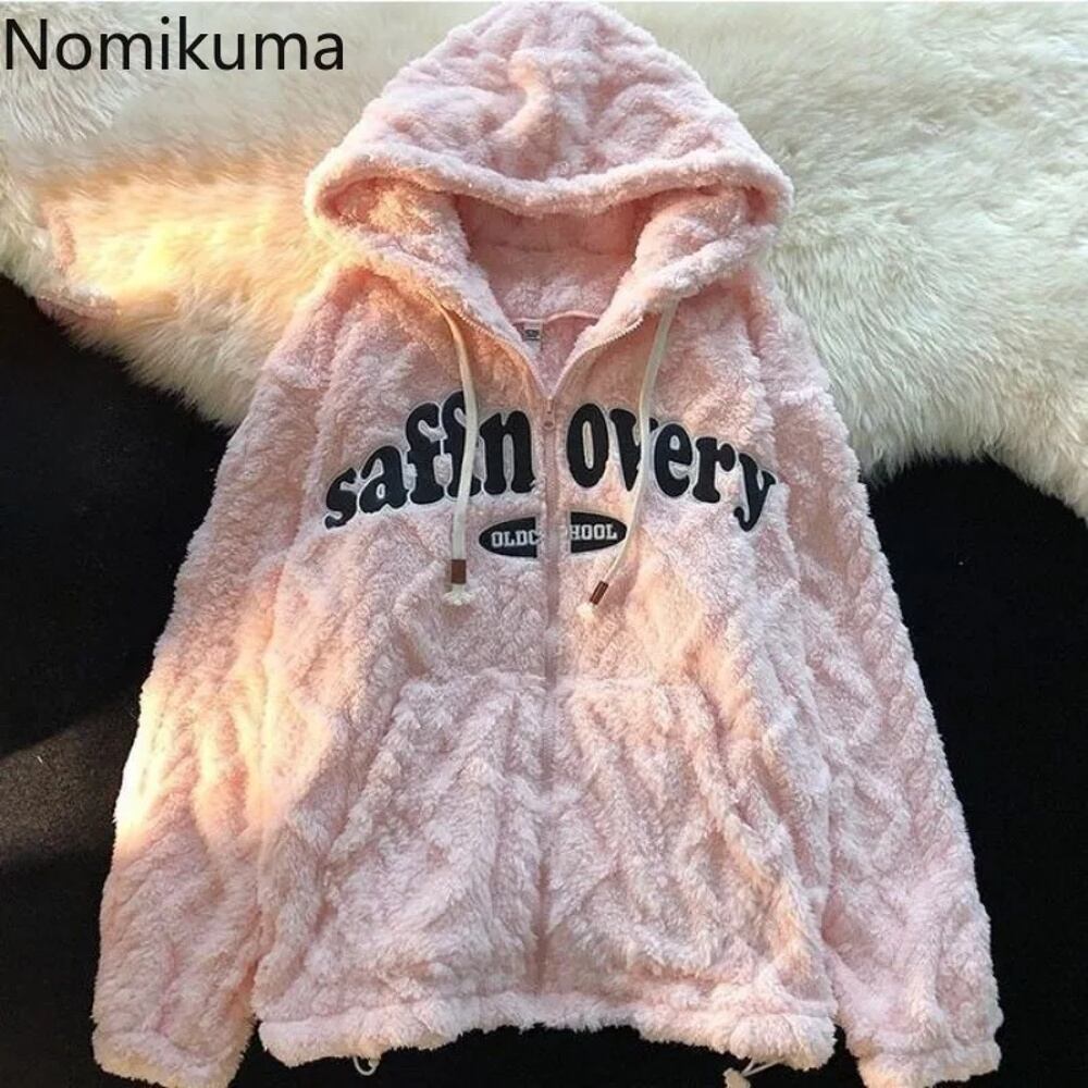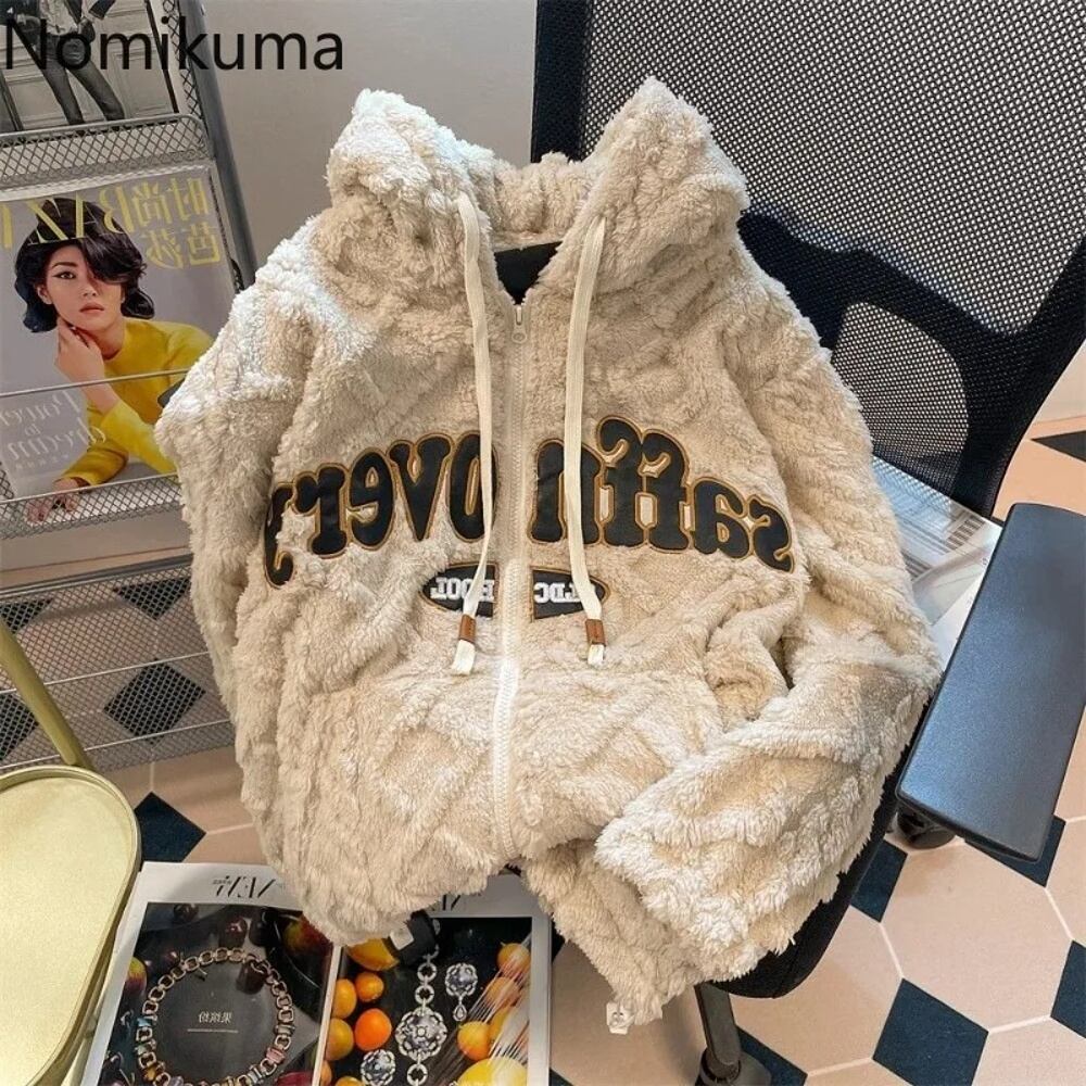 女性用ラムウールパーカー、ヒップホップスウェットシャツ、厚手のジャケット、カジュアルウェア、y2kトップス、ストリートウェア、ファッションレター、2024 パーカー ジャージ y2k T240908201522_01