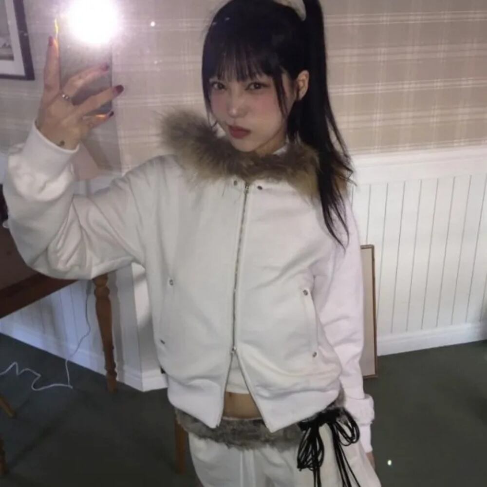 女性のためのアメリカンスタイルのふわふわパーカー、ルーズジッパートップス、y2kグランジスウェットシャツ、長袖、新しい春と秋 パーカー ジャージ y2k T240908201600_02