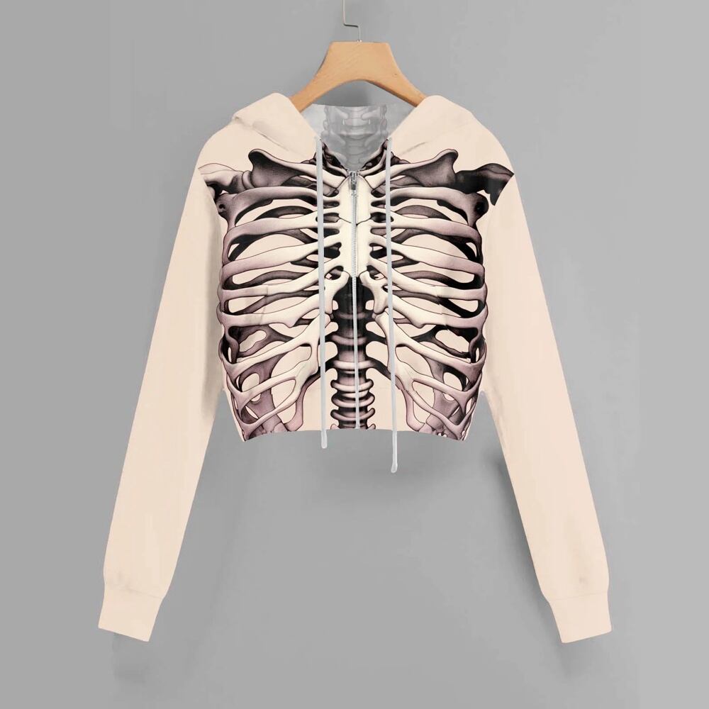 女性用ハロウィンスカルプリントクロップドパーカー、長袖トップス、フルジップフード付きスウェットシャツ、ゴシックストリートウェア、y2k服 パーカー ジャージ y2k T240908201714_05