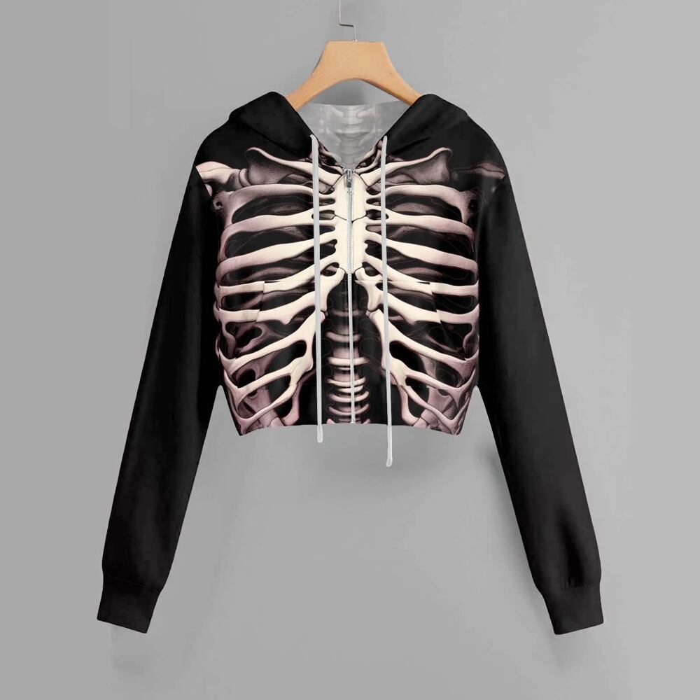 女性用ハロウィンスカルプリントクロップドパーカー、長袖トップス、フルジップフード付きスウェットシャツ、ゴシックストリートウェア、y2k服 パーカー ジャージ y2k T240908201714_07