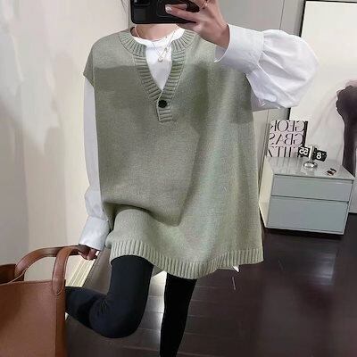 人気なリブニット 秋冬新作 大きいサイズ ベーシックニットベスト Vネック 着痩せ ベスト レディースカシミヤタッチ重ね着 百掛け ニットベスト 体型カバー? セーター ノースリーブトップス