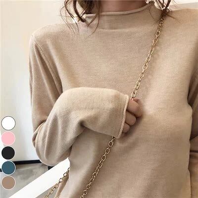 人気なリブニット ベーシックニット 秋冬 薄ニットアンダーウェア ハイネック 長袖トップス シンプル無地インナー セーター レディース 百掛け 着痩せカシミヤタッチ