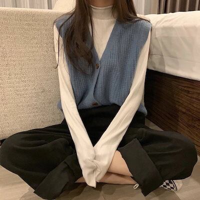 人気なリブニット ベーシックニット 韓国ファッション ニットベスト 無地 百掛け ノースリーブ ニットトップス セーター レディース 秋冬ニットベスト 秋カシミヤタッチ 通勤 通学