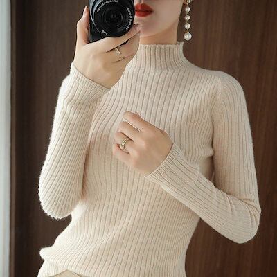 人気なリブニット ベーシックニット カシミヤタッチ 秋冬秋ジャケットセーターニットインナーハーフレディースカジュアル裹起毛