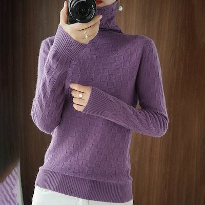 人気なリブニット ベーシックニット カシミヤタッチ 秋冬秋ジャケットセーターニットインナーハイレディースカジュアル裹起毛
