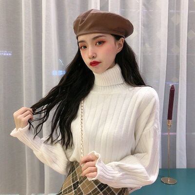 人気なリブニット ベーシックニット カシミヤタッチ 秋冬ジャケット秋冬ニットセーターレディースパフスリーブ上着可愛い159裹起毛 長袖トップス