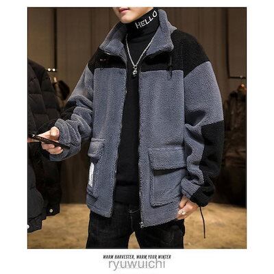 フリースジャケット ボアジャケット メンズ 切り替え アウター ジップアップ 大きいサイズ 秋冬 厚手 アウトドア 防風 防寒 暖かい