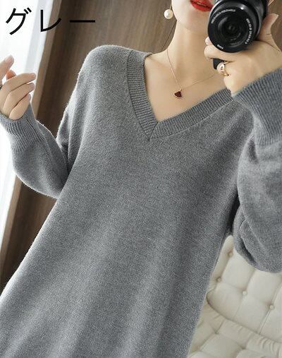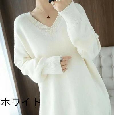 ニット レディース トップス セーター 長袖 Vネック プルオーバー カットソー 無地 厚手 オフィス アウター 大きいサイズ ゆったり カジュアル 黒 春 冬 秋