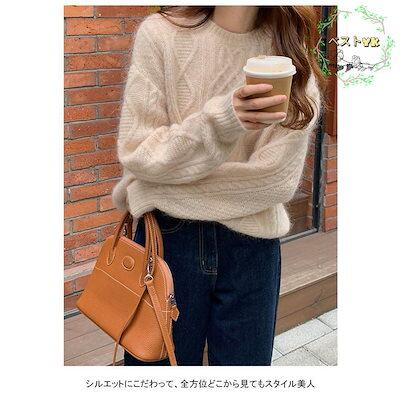 ニットセーター 長袖 セーター レディース ニット セーター クルーネック ソフト 厚手 スリット 無地 トップス アウター プルオーバー ゆったり 着回し