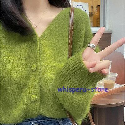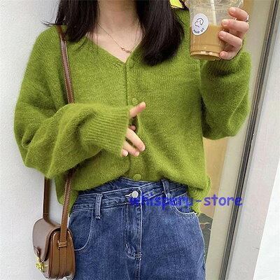 レディース トップス カーディガン ニット 秋 長袖 グリーン ライトニット ゆったり カジュアル ファッション 通勤 普段着