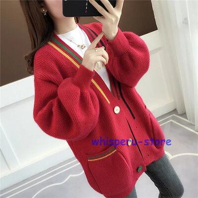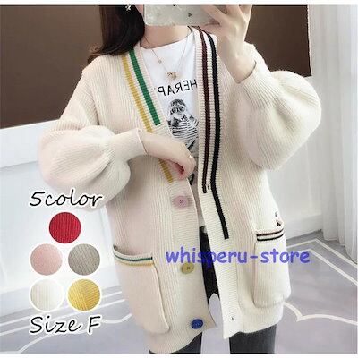 レディース トップス カーディガン ニット 秋 長袖 ピンク イエロー レッド ベージュ ラクダ色 ライトニット ゆったり カジュアル ファッション 通勤 普段着