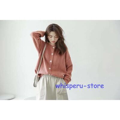 レディース トップス カーディガン ニット 秋 長袖 ピンク ベージュ ライトニット ゆったり カジュアル ファッション 通勤 普段着