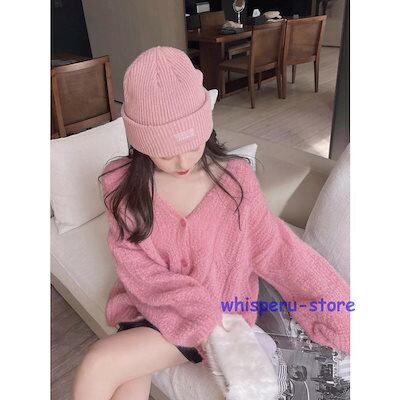 レディース トップス カーディガン ニット 秋 長袖 ベージュ ピンク ライトニット ゆったり カジュアル ファッション 通勤 普段着
