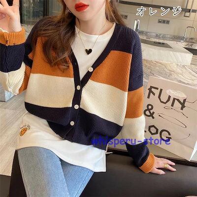 レディース トップス カーディガン ニット 秋 長袖 ブラック カーキ オレンジ ライトニット ゆったり カジュアル ファッション 通勤 普段着