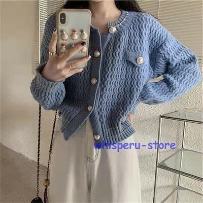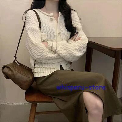 レディース トップス カーディガン ニット 秋 長袖 ベージュ ブラック ブルー ライトニット ゆったり カジュアル ファッション 通勤 普段着