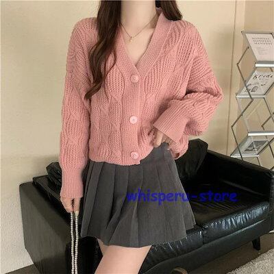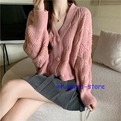 レディース トップス カーディガン ニット 秋 長袖 ベージュ ピンク ブルー ライトニット ゆったり カジュアル ファッション 通勤 普段着