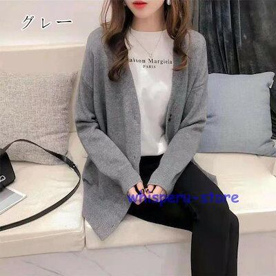 レディース トップス カーディガン ニット 秋 長袖 グレー ブラック カーキ ブラウン ライトニット ゆったり カジュアル ファッション 通勤 普段着
